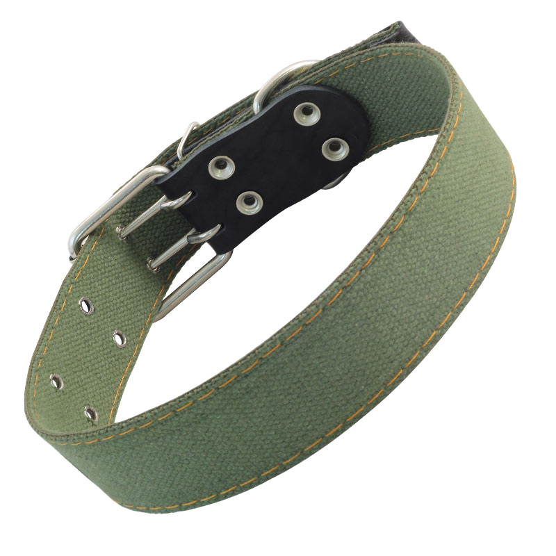 Одинарный прошитый ошейник из брезента с кожаным подпряжником и прочным кольцом для крепления поводка или водилки. Такой ошейник отлично подойдет для собак крупных пород (размеры изделия 740х45 мм). Материал прочный и износостойкий, а длина изделия удобно регулируется. Цвет: хаки.