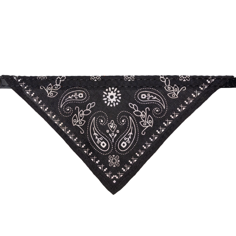Ошейник из искусственной кожи с оригинальным дизайном в виде банданы - стильный и функциональный аксессуар для кошек и собак мелких пород. Изделие выполнено с использованием крепкой металлической фурнитуры и изящного декора. Длину изделия удобно подгонять под индивидуальные параметры животного, а прочное основание ошейника отлично подойдет для крепления поводка, адресника или других аксессуаров. Размеры изделия: 10*310мм. Цвет: черный.