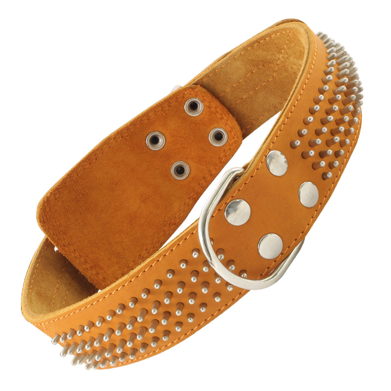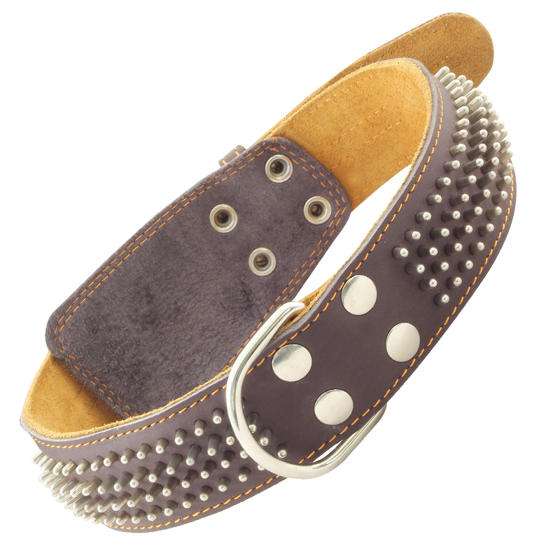 Ошейник кожаный двойной c кольцом и украшением "Ёж", 45мм*810мм, Gamma