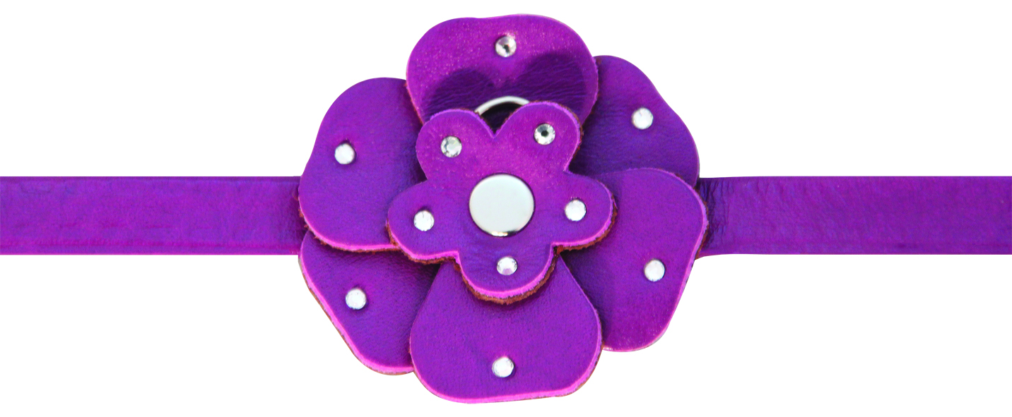 Ошейник-мини двойной со стразами кожаный "Цветок" M, 12*250мм, Gamma