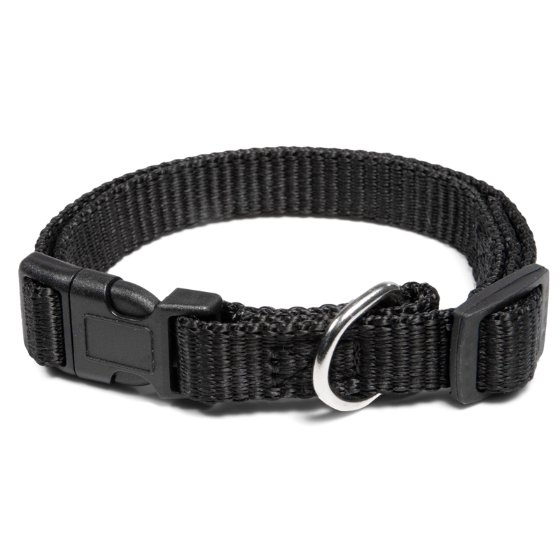 Регулируемый ошейник из нейлона - это полезный и функциональный аксессуар для четвероногих питомцев. Изделие имеет сбоку от застежки удобное кольцо для крепления поводка. Размеры изделия регулируемой длины: 250-400х15мм (размер S). Цвет: черный.