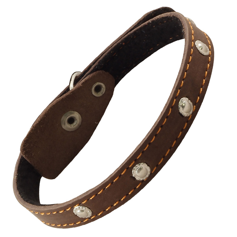 Ошейник с украшением на синтепоне кожаный, 15*410мм, Gamma
