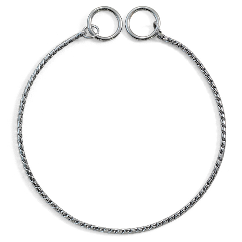 Изящный ошейник серебристого цвета с плетением "змейка" - идеальный вариант для питомцев с выставочной карьерой. Аккуратное плетение из мелких звеньев не ломает линию шеи и обеспечивает максимальное скольжение по шерсти животного, не допуская ее преминания, сечения и запутывания. Изделие отлично смотрится и подходит для собак мелких и средних пород. Размер: 4х450мм. Цвет: серебро.
