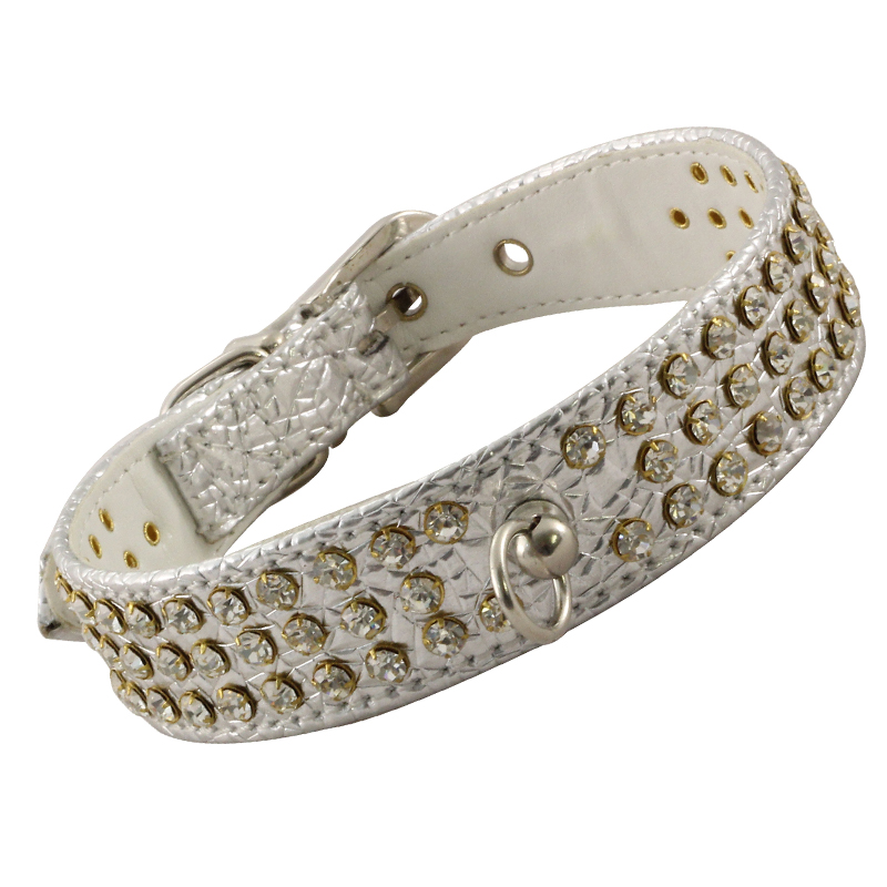 Ошейник YS1205A из иск.кожи со стразами, 25*400мм, Triol