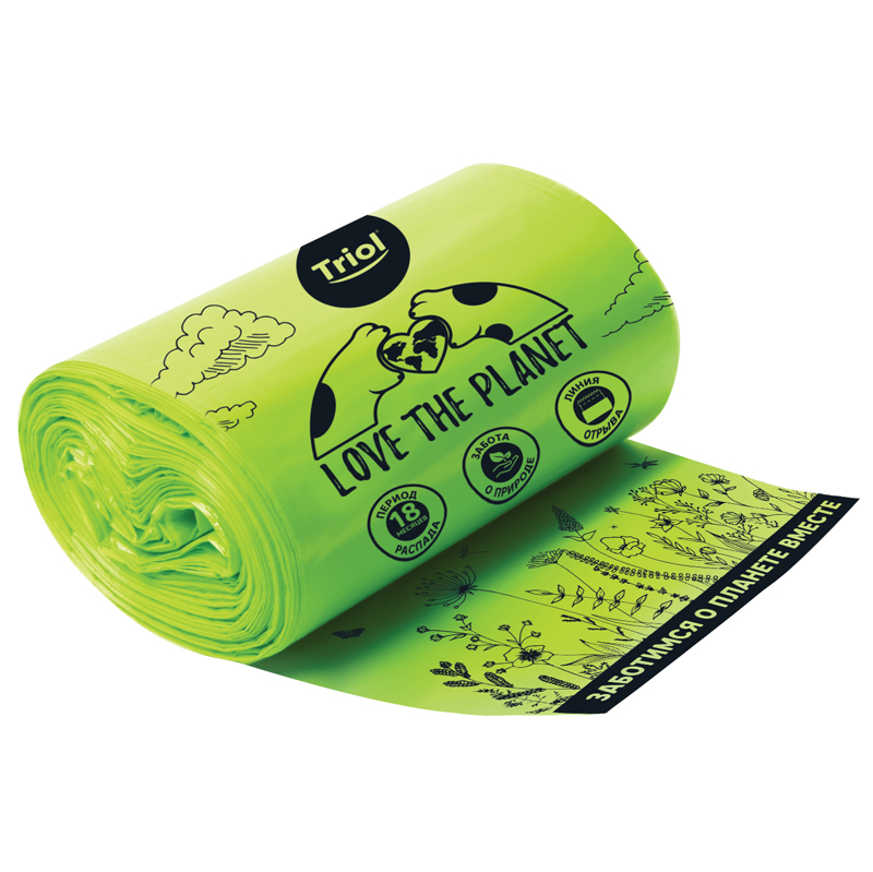 Пакеты биоразлагаемые для выгула собак (4 рулона), d25*60мм, серия LOVE THE PLANET, Triol
