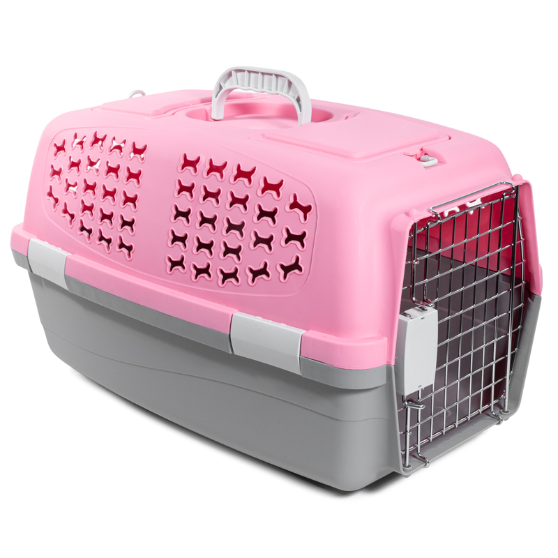 Переноска для животных c металлической дверцей "Косточки" L, розовая, 600*390*350мм, серия TRAVEL, Triol
