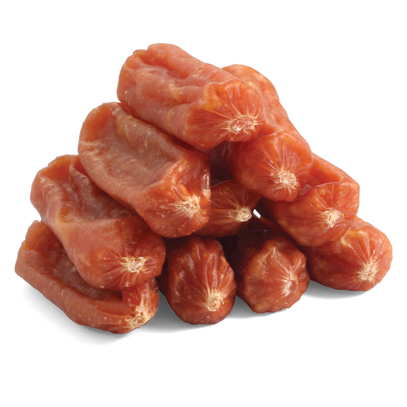Пикантные сосиски из курицы – это незаменимое лакомство для активного отдыха с вашим любимцем, которое подарит заряд бодрости и энергии благодаря повышенному содержанию витаминов B1, B6, B12 и L-карнитина. Сосиски расфасованы в пластиковые банки, при этом каждая сосиска упакована в индивидуальный пакетик со штрихкодом и всей необходимой информацией о продукте. Таким образом, потребитель может выбрать: покупать целую банку или поштучно. Банку с эргономичной ручкой удобно хранить и легко транспортировать. Вес нетто 500г. В банке 65-72 сосиски.