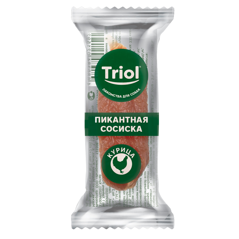 Пикантные сосиски из курицы для собак, 500г (банка), Triol