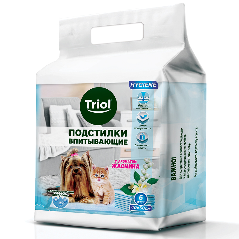 Подстилки впитывающие с ароматом жасмина, 400*500мм (уп.6шт.), Triol