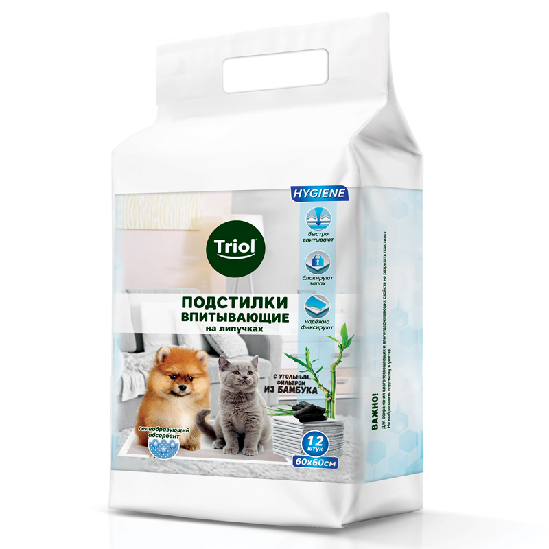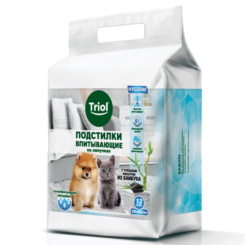Подстилки впитывающие с угольным фильтром на липучках, 600*600мм (уп.12шт.), серия HYGIENE, Triol