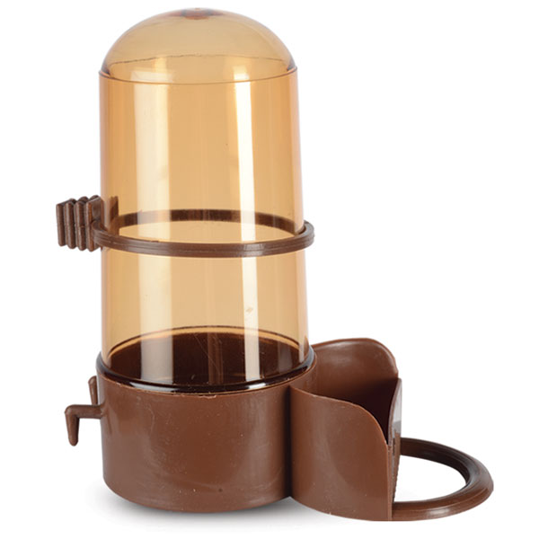 Эта удобная и функциональная поилка с узким носиком идеально подходит для мелких и средних птиц. При помощи специального крепления она легко устанавливается на прутьях клетки. Просто наполните ее чистой водой и закрепите при помощи держателя. Изделие удобно в эксплуатации и выполнено из прочного нетоксичного пластика, поэтому абсолютно безвредно для питомцев. Размер: 160 (высота); d70; 140мм (ширина).Объем: 320мл. Цвет: коричневый, белый.