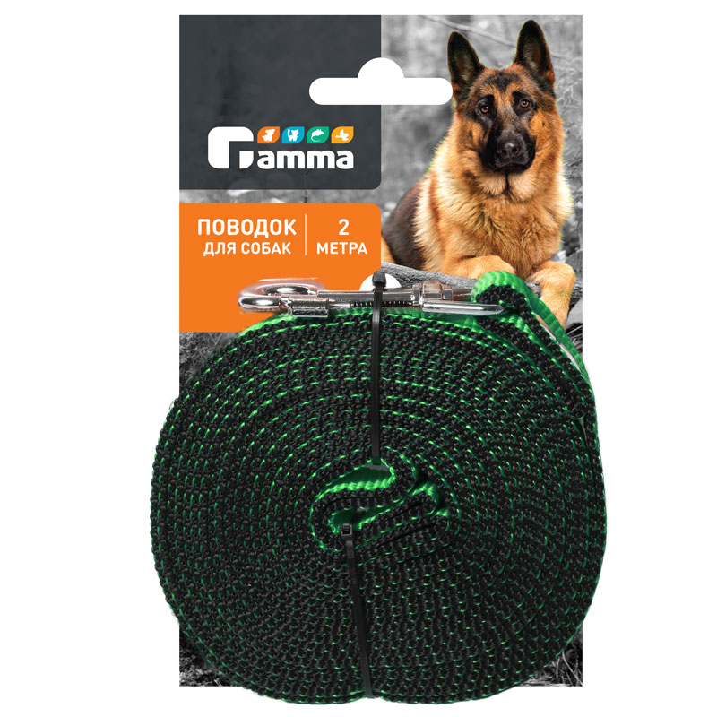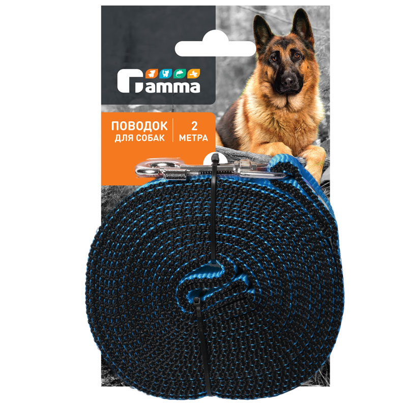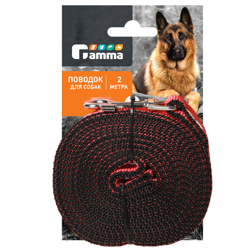 Поводок капроновый для собак, 25*2000мм, Gamma