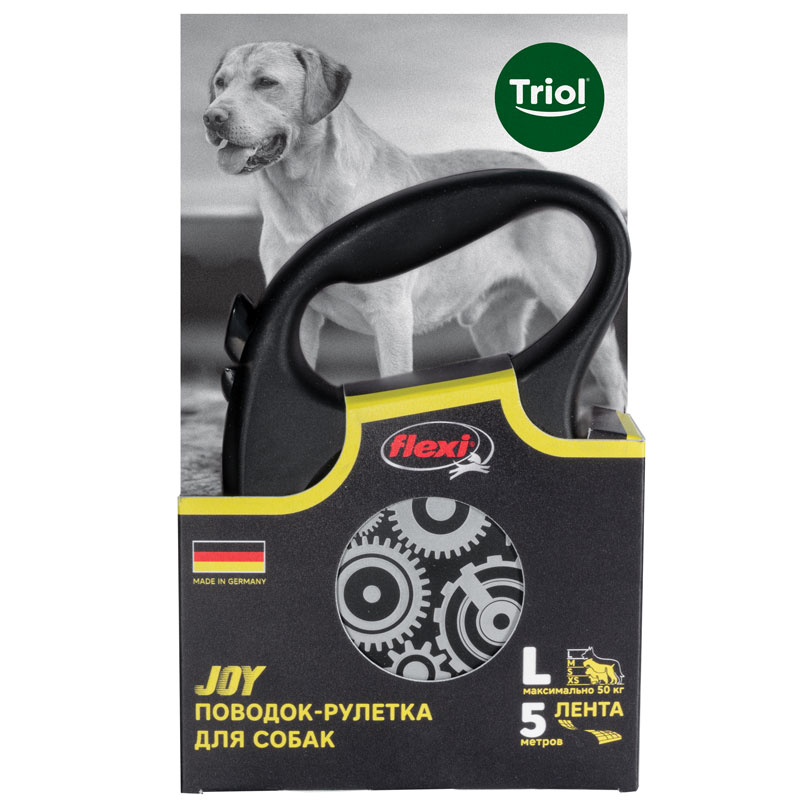Рулетки для собак flexi – это безусловное качество, подкрепленное многолетним опытом, которое теперь доступно и поклонникам бренда TRIOL. Идеальное исполнение, прочный и, в то же время, приятный на ощупь пластик, запатентованный тормозной механизм и легендарная надежность стали более доступны благодаря сотрудничеству российской компании и немецкого производителя. Рулетки новой коллекции производятся в Германии, собираются вручную и проходят десятки проверок качества перед выпуском с завода. Гарантия производителя составляет два года и предоставляется только на функционирование механизма размотки и не распространяется на повреждения, возникшие в результате укусов собаки или прочего ненадлежащего использования рулетки. В рулетках серии Joy предусмотрена возможность крепления специального мультибокса - компактный контейнер для гигиенических пакетов удобно фиксируется прямо под ручкой! Мультибокс приобретается отдельно. Длина ленты: 5м. Максимальная нагрузка: 50кг. Цвет рулетки: черный, цвет рисунка: серый. Рулет