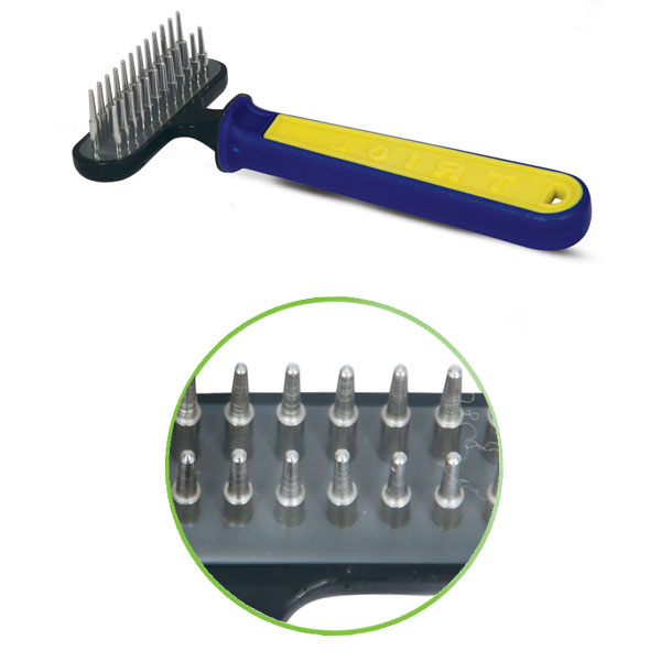 Двухрядная расческа-грабли серии "Спорт" с удобной пластиковой ручкой и 12 крупными металлическими зубцами в каждом ряду. Изделие предназначено для бережного расчёсывания шерсти пушистого питомца. Специальные зубчики позволяют проводить расчёсывание аккуратно, без раздражения кожного покрова животного, доставляя ему большое удовольствие. Размер 155х80х30мм. Упаковка: пакет с клапаном.