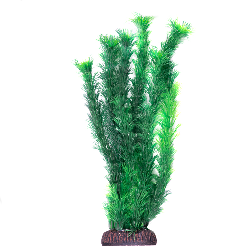 Растения - это не только завершающий штрих в оформлении, но и необходимый атрибут любого аквариума. Они придают трехмерность внутреннему пространству аквариума, а также служат дополнительным укрытием для небольших рыб, отвечая тем самым не только за эстетику, но и принося обитателям аквариума реальную пользу. Неоспоримое преимущество искусственных растений в том, что в них не заводятся паразиты и грибки, их легко мыть и дезинфицировать, и прослужат они неизмеримо дольше, чем живые растения. Изготовленное из нетоксичного пластика, растение для аквариума с тяжелой керамической подставкой "Амбулия" подойдет для оформления любых типов пресноводных аквариумов.