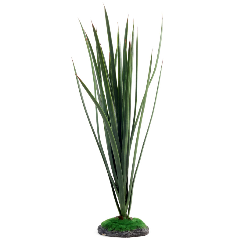 Растения - это не только завершающий штрих в оформлении, но и необходимый атрибут любого террариума. Они дают укрытие и тень, по ним животное может перемещаться, они придают трехмерность внутреннему пространству террариума. Пластиковое растение на подставке из полиэфирной смолы с напылением в виде искусственного мха подходит для оформления тропических террариумов. Неоспоримое преимущество искусственных растений в том, что им не нужен полив, в них не заводятся паразиты и грибки, их легко мыть и дезинфицировать, и прослужат они неизмеримо дольше, чем живые растения.