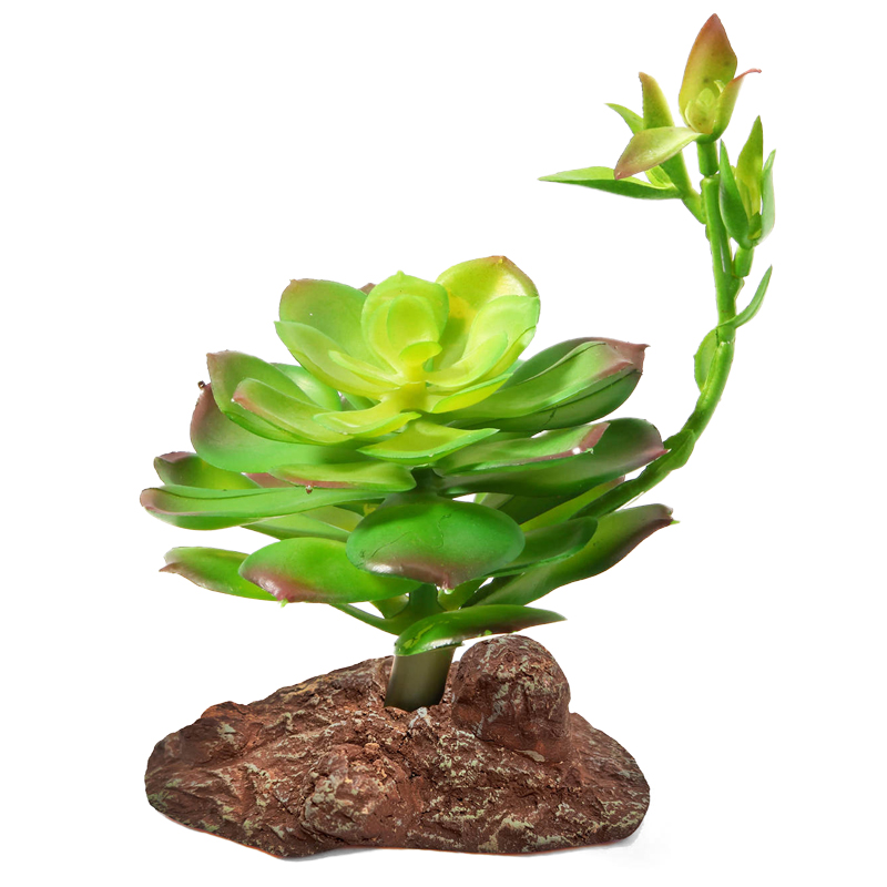 Растения - это не только завершающий штрих в оформлении, но и необходимый атрибут любого террариума. Они дают укрытие и тень, по ним животное может перемещаться, они придают трехмерность внутреннему пространству террариума. Пластиковое растение на подставке из полиэфирной смолы подходит для оформления пустынных, полупустынных и тропических террариумов. Неоспоримое преимущество искусственных растений в том, что им не нужен полив, в них не заводятся паразиты и грибки, их легко мыть и дезинфицировать, и прослужат они неизмеримо дольше, чем живые растения.