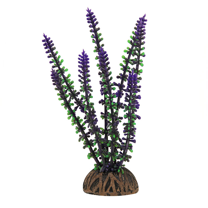 Растения - это не только завершающий штрих в оформлении, но и необходимый атрибут любого аквариума. Они придают трехмерность внутреннему пространству аквариума, а также служат дополнительным укрытием для небольших рыб, отвечая тем самым не только за эстетику, но и принося обитателям аквариума реальную пользу. Неоспоримое преимущество искусственных растений в том, что в них не заводятся паразиты и грибки, их легко мыть и дезинфицировать, и прослужат они неизмеримо дольше, чем живые растения. Изготовленное из нетоксичного пластика, растение для аквариума с тяжелой керамической подставкой "Эрика" подойдет для оформления любых типов пресноводных аквариумов.