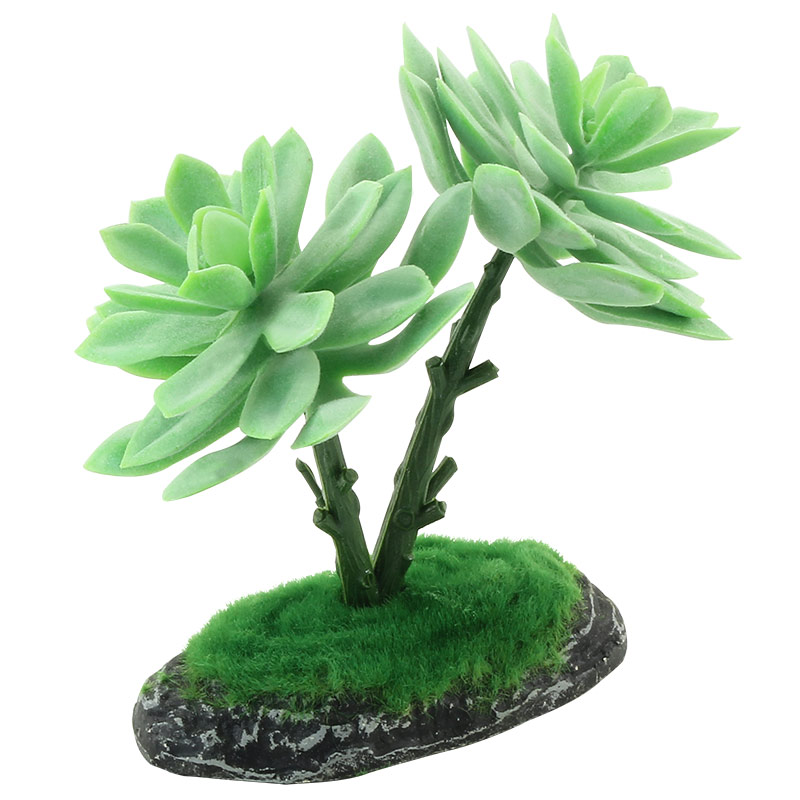 Растения - это не только завершающий штрих в оформлении, но и необходимый атрибут любого террариума. Они дают укрытие и тень, по ним животное может перемещаться, они придают трехмерность внутреннему пространству террариума. Пластиковое растение на подставке из керамики с напылением в виде искусственного мха подходит для оформления пустынных террариумов. Листья растения покрыты тонким слоем напыления из белого пластика, имитирующего пыльцу живого растения, которое может стираться при механическом воздействии. Неоспоримое преимущество искусственных растений в том, что им не нужен полив, в них не заводятся паразиты и грибки, их легко мыть и дезинфицировать, и прослужат они неизмеримо дольше, чем живые растения.