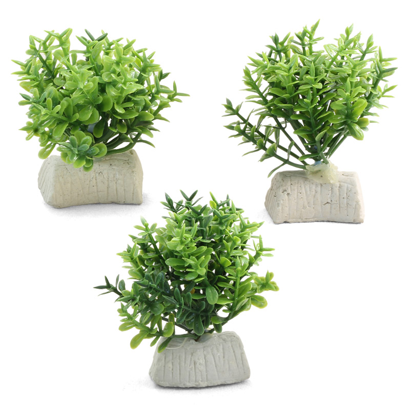 Растения - это не только завершающий штрих в оформлении, но и необходимый атрибут любого аквариума. Они придают трехмерность внутреннему пространству аквариума, а также служат дополнительным укрытием для небольших рыб, отвечая тем самым не только за эстетику, но и принося обитателям аквариума реальную пользу. Неоспоримое преимущество искусственных растений в том, что в них не заводятся паразиты и грибки, их легко мыть и дезинфицировать, и прослужат они неизмеримо дольше, чем живые растения. Изготовленное из нетоксичного пластика, растение для аквариума с тяжелой керамической подставкой "Микрантемум", одна ветка, в наборе из 3х штук, подойдет для оформления переднего плана любых типов пресноводных аквариумов. Мелколистное аквариумное растение будет прекрасно смотреться в нано-аквариумах.