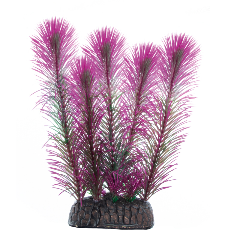 Растения - это не только завершающий штрих в оформлении, но и необходимый атрибут любого аквариума. Они придают трехмерность внутреннему пространству аквариума, а также служат дополнительным укрытием для небольших рыб, отвечая тем самым не только за эстетику, но и принося обитателям аквариума реальную пользу. Неоспоримое преимущество искусственных растений в том, что в них не заводятся паразиты и грибки, их легко мыть и дезинфицировать, и прослужат они неизмеримо дольше, чем живые растения. Изготовленное из нетоксичного пластика, растение для аквариума с тяжелой керамической подставкой "Перистолистник фиолетовый" подойдет для оформления любых типов пресноводных аквариумов.
