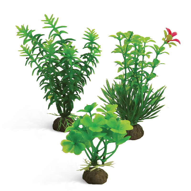 Растения - это не только завершающий штрих в оформлении, но и необходимый атрибут любого аквариума. Они придают трехмерность внутреннему пространству аквариума, а также служат дополнительным укрытием для небольших рыб, отвечая тем самым не только за эстетику, но и принося обитателям аквариума реальную пользу. Неоспоримое преимущество искусственных растений в том, что в них не заводятся паразиты и грибки, их легко мыть и дезинфицировать, и прослужат они неизмеримо дольше, чем живые растения. Изготовленные из нетоксичного пластика, растения для аквариума в наборе из 3 штук подойдут для оформления переднего плана любых типов пресноводных аквариумов.