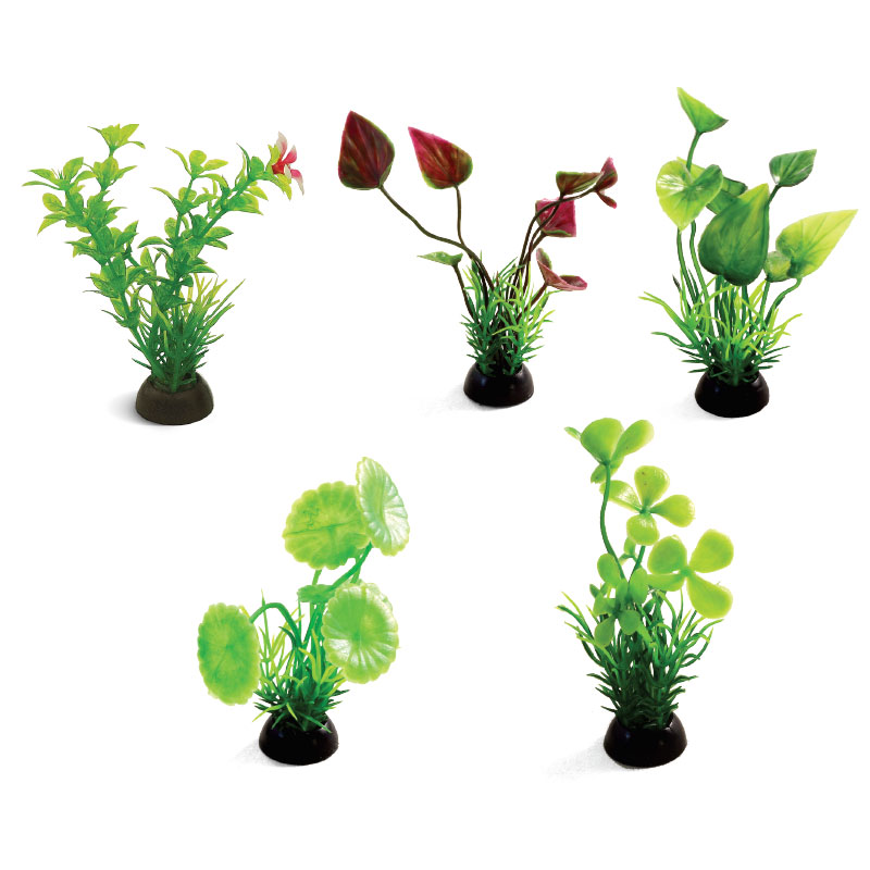 Растения - это не только завершающий штрих в оформлении, но и необходимый атрибут любого аквариума. Они придают трехмерность внутреннему пространству аквариума, а также служат дополнительным укрытием для небольших рыб, отвечая тем самым не только за эстетику, но и принося обитателям аквариума реальную пользу. Неоспоримое преимущество искусственных растений в том, что в них не заводятся паразиты и грибки, их легко мыть и дезинфицировать, и прослужат они неизмеримо дольше, чем живые растения. Изготовленные из нетоксичного пластика, растения для аквариума в наборе из 5 штук подойдут для оформления переднего плана любых типов пресноводных аквариумов.