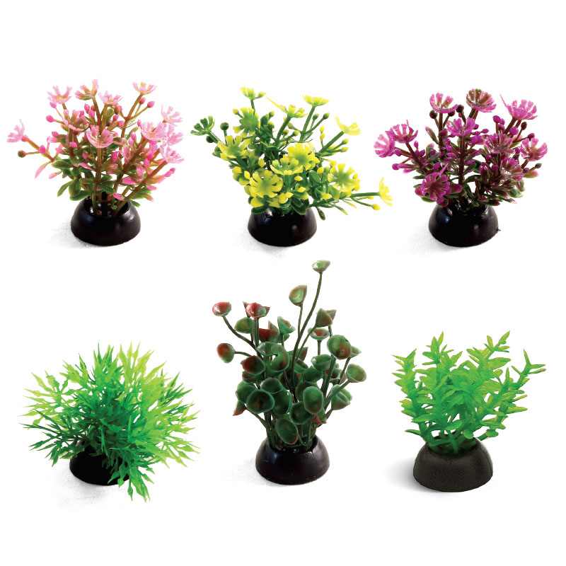 Растения - это не только завершающий штрих в оформлении, но и необходимый атрибут любого аквариума. Они придают трехмерность внутреннему пространству аквариума, а также служат дополнительным укрытием для небольших рыб, отвечая тем самым не только за эстетику, но и принося обитателям аквариума реальную пользу. Неоспоримое преимущество искусственных растений в том, что в них не заводятся паразиты и грибки, их легко мыть и дезинфицировать, и прослужат они неизмеримо дольше, чем живые растения. Изготовленные из нетоксичного пластика, растения для аквариума в наборе из 6 штук подойдут для оформления переднего плана любых типов пресноводных аквариумов.
