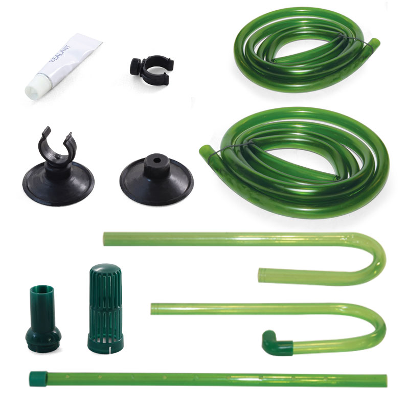 Универсальный комплект запчастей для ремонта внешних фильтров. В комплект входят: флейта фильтра, две пластиковые трубки - на забор и выброс воды, жидкий силиконовый уплотнитель в тубе 5мг, резиновые присоски, ПВХ-шланги для забора и выброса воды, защитные решетки заборной трубки (предотвращение засора трубки)