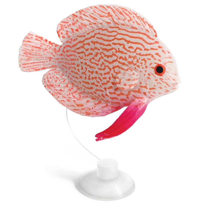 Декоративная рыбка из силикона с люминофором, имитация живых рыбок. Легкие рыбки крепятся ко дну аквариума с помощью присоски и тонкой лески. В течение светового дня люминофор накапливает энергию, которую затем постепенно начинает отдавать в темноте, создавая таинственное свечение.