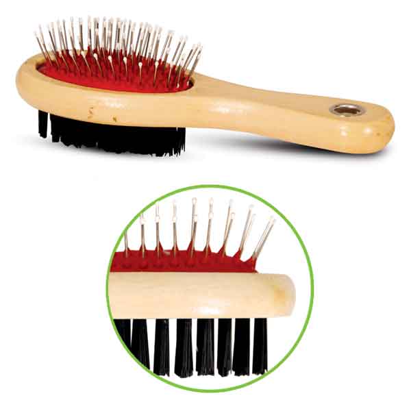 Двустороняя щетка овальной формы с деревянной ручкой обеспечивает нежный уход за верхним и базовым слоем шерсти животного. Нейлоновая щетина с одной стороны и металлическая с наконечниками с другой идеально подходят для питомцев с любым типом шерсти. Благодаря обтекаемой форме такую щетку удобно держать в руке, а функциональная щетина отлично справляется со своей задачей, не доставляя дискомфорта животному. Размер изделия: 205х55х55мм. Упаковка: блистер.