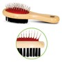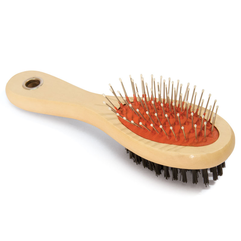 Двустороняя щетка овальной формы с деревянной ручкой обеспечивает нежный уход за верхним и базовым слоем шерсти животного. Нейлоновая щетина с одной стороны и металлическая с наконечниками с другой идеально подходят для питомцев с любым типом шерсти. Благодаря обтекаемой форме такую щетку удобно держать в руке, а функциональная щетина отлично справляется со своей задачей, не доставляя дискомфорта животному. Размер изделия: 170х55х55мм. Упаковка: блистер.