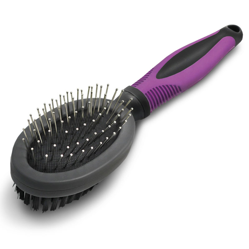 Двустороняя щетка TRIOL™ обеспечивает бережный уход за верхним и базовым слоем шерсти животного. Нейлоновая щетина с одной стороны и металлическая щетина с наконечниками с другой идеально подходят для питомцев с любым типом шерсти. Благодаря эргономичной прорезиненной ручке, такая щетка удобно лежит в руке, а функциональная щетина изделия отлично справляется со своей задачей, не причиняя дискомфорта животному при вычесывании. Изделие упаковано в блистер. Размер изделия: 215х50х50мм.