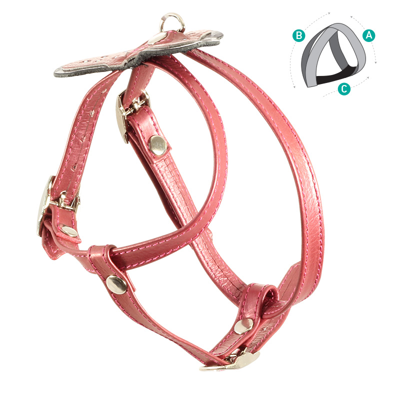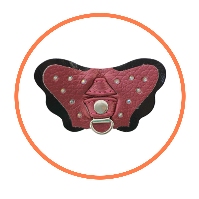 Шлейка-мини кожаная двойная, "Бабочка" со стразами 10мм, обх.шеи 120-180мм, обх.гр. 200-240мм , Gamma