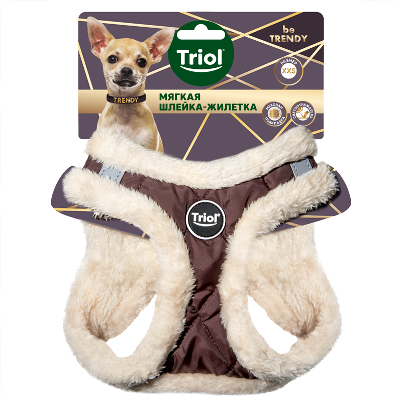 Шлейка-жилетка мягкая коричневая XXS, обхват груди 280-320мм, серия BE TRENDY, Triol