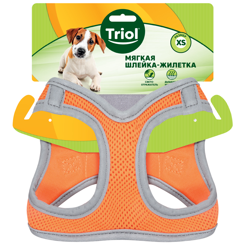 Шлейка-жилетка мягкая нейлоновая оранжевая XS, обхват груди 320-360мм, Triol