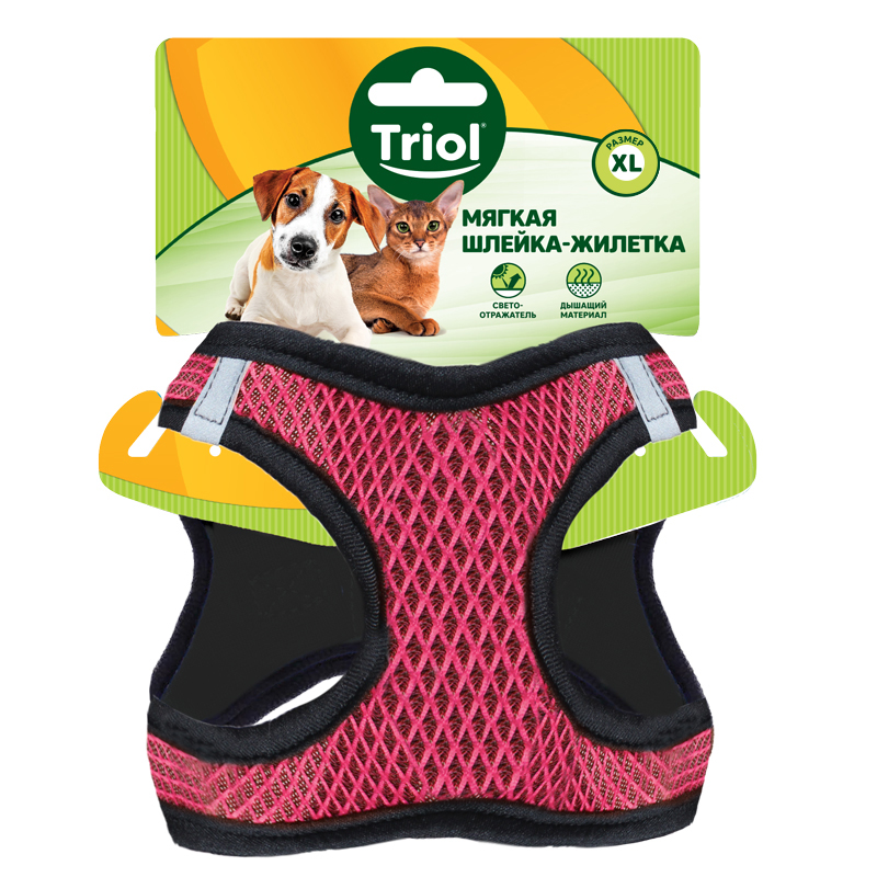 Шлейка-жилетка мягкая нейлоновая розовая XL, обхват груди 520-560мм, Triol