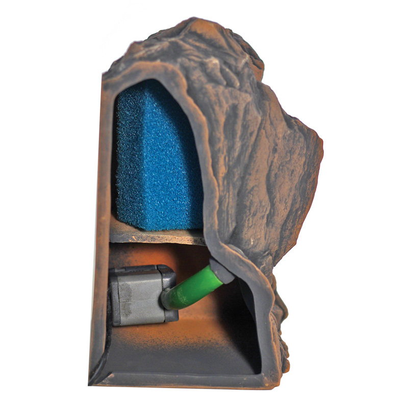 Скала с водопадом для черепах - это многофункциональный элемент декора, объединивший в себе фильтр для воды, водопад и площадку для обогрева водных черепах. Фильтр помещен в корпус скалы для безопасности животного. Мощная помпа и несколько уровней фильтрации обеспечивают механическую и биологическую очистку воды, а также насыщение воды кислородом. Верхняя часть скалы служит сухим островком для обогрева черепах.