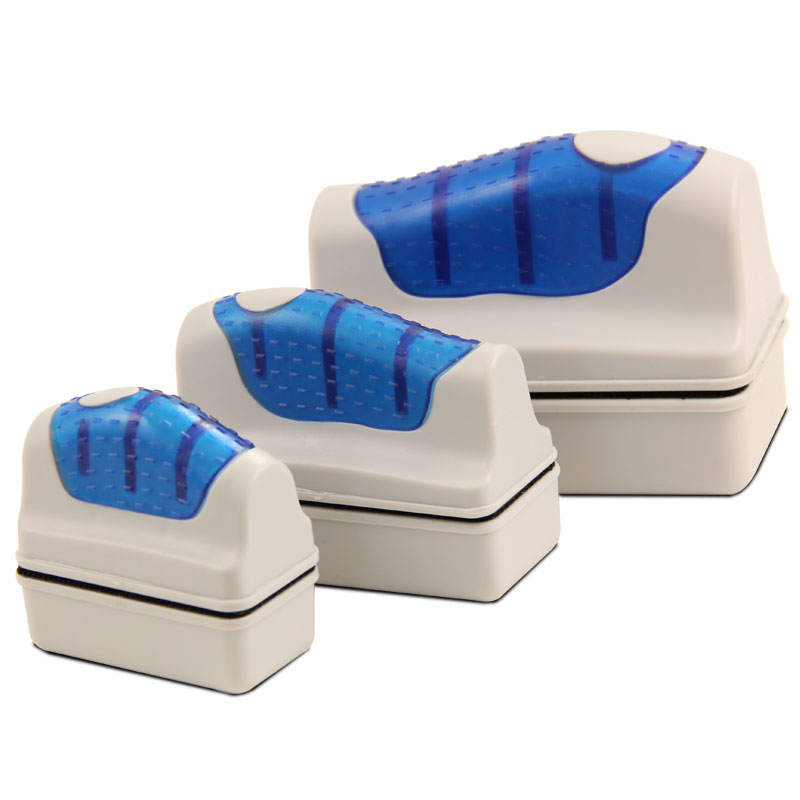 Скребок для чистки внутренней поверхности аквариумных стекол. Имеет удобную силиконовую ручку, на которой даже руки, мокрые от работы с аквариумом, не скользят. Мощный магнит плотно прижимает к стеклу чистящую поверхность. Внутри чистящей поверхности воздушная прослойка, за счет которой обеспечивается ее плавучесть. Используется для аквариумов из силикатного и акрилового стекла. Можно использовать как в пресной, так и в морской воде.