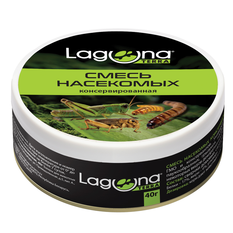 Состав: сверчки домовые, саранча, мучной червь, зофобас консервированные