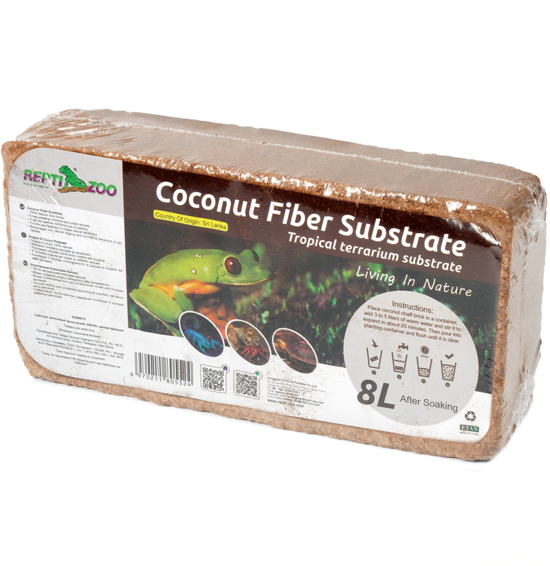Натуральный субстрат изготовлен из экологически чистого природного материала - измельченных волокон кокосового ореха, спрессованных под давлением в брикеты. Кокосовый субстрат идеален для террариумов, флорариумов, горшечных и садовых растений. Можно использовать в инкубаторах. Прекрасно удерживает влагу, не разлагается и не гниет. Кокосовый субстрат легок в применении - брикет кокосового грунта нужно поместить в емкость с 4 литрами теплой воды, через 20 минут получается 8 литров готового к употреблению грунта. Рекомендуется замена один раз в месяц.