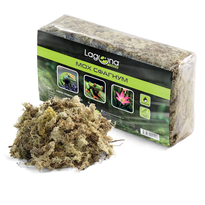 Натуральный субстрат изготовлен из экологически чистого природного материала - мха сфагнума. Идеален для террариумов, флорариумов, горшечных и садовых растений. Субстрат прекрасно удерживает влагу и легок в применении: нужно поместить брикет в емкость с водой, после того, как мох впитает воду, вынуть мох и легко отжать, чтобы он оставался влажным. Из брикета весом 100г получается 4 литра готового субстрата.