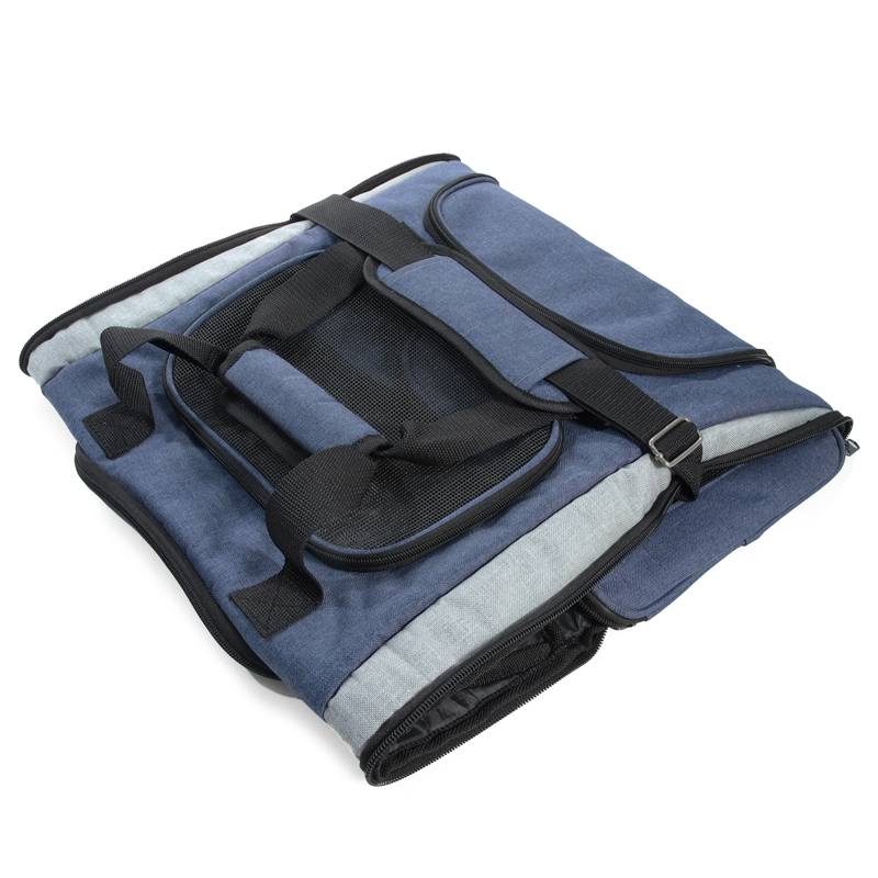 Сумка-переноска "Глория" - идеальное решение для путешествий с питомцем. Она отлично подходит для перевозки кошек и собак небольших пород. Отверстия с сеткой обеспечивают циркуляцию воздуха внутри сумки. Переноска имеет несколько входов, за счет чего вашему любимцу будет легче попасть внутрь. Мягкая подстилка в комплекте сделает отдых вашего четвероногого друга комфортным, а специальный карман для аксессуаров позволит взять с собой полезные мелочи, так необходимые питомцу в дороге. Сумка имеет ручки и наплечный ремень, а также ремешок с карабином для фиксации животного. Благодаря оптимальным габаритам изделие не занимает много места, легко складывается для компактного хранения. Цвет изделия: синий с серым. Размер изделия: 450х265х280мм. Максимальная нагрузка: 7 кг.