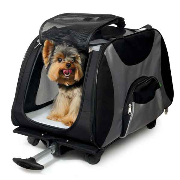 Многофункциональная сумка-переноска на колесах имеет выдвижную телескопическую ручку. Дно сумки крепится к корпусу при помощи липучек и при необходимости легко отстегивается. Доступ внутрь изделия обеспечивается с фронтальной зоны и сверху. Поводок-фиксатор оптимальной длины не позволит вашему питомцу выпрыгнуть из переноски, мягкая подушка внутри - отвечает за комфорт питомца, а сетчатые вставки обеспечивают хорошую циркуляцию воздуха. Сумка также имеет удобное отделение для хранения сопутствующих предметов, а благодаря специальному ремню ее удобно носить на плече.