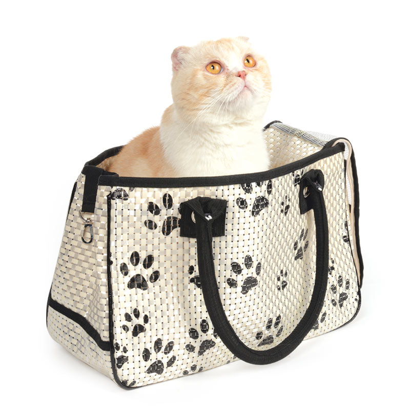 Сумка-переноска для животных. Плетеная сумка, тканевые ручки, жесткое дно. Открывается сверху при помощи молнии. Вентиляция сверху и по всей сумке за счет плетения материала. Один внутренний карман на липучке. В комплекте поводок-фиксатор на резинке, жесткая подстилка на липучке и дополнительный ремень на плечо с резиновым бегунком. Материал обладает превосходной воздухопроницаемостью, быстро сохнет и даже производит охлаждающий эффект. Полиэстер не восприимчив к воздействию ультрафиолета, не подвергается угрозе быть поврежденным молью и прочими вредителями, устойчив к пятнам. Изделия из данного материала служат долго не теряя яркости красок. Цвет: белый с черными следами. Размер: 400*260*200мм.