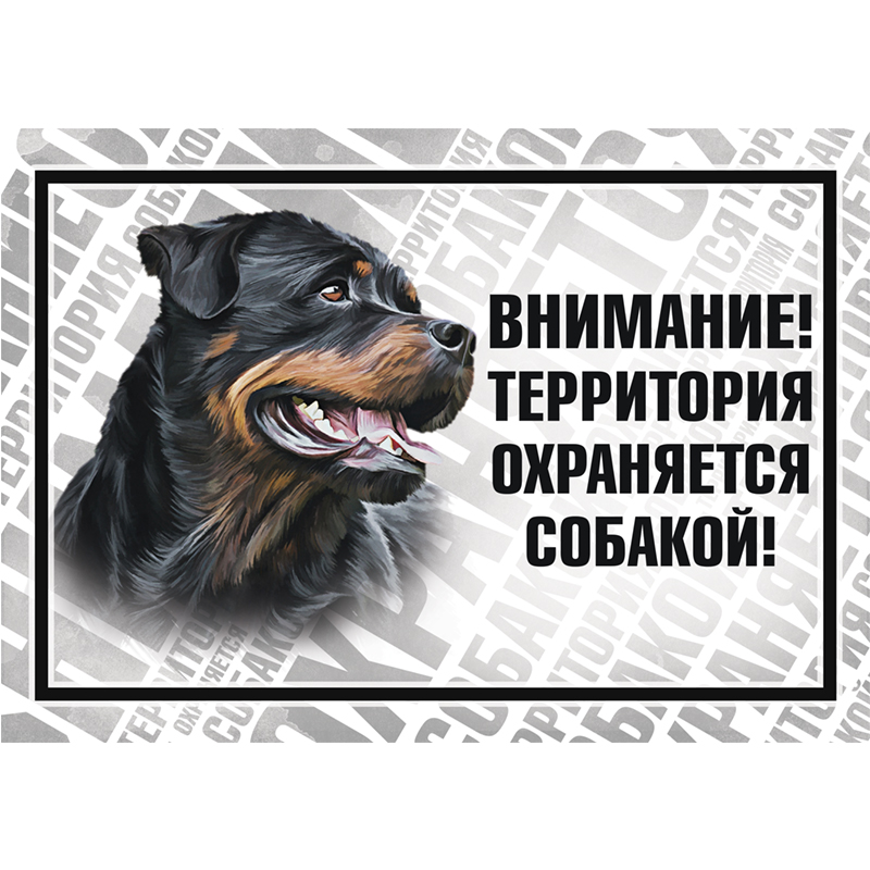 Табличка "Охраняется собакой", ротвейлер, 250*170мм