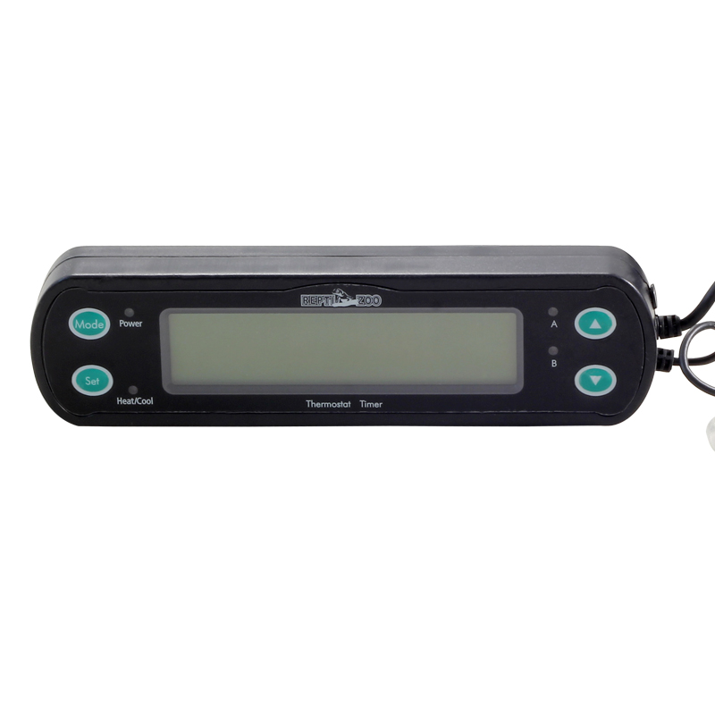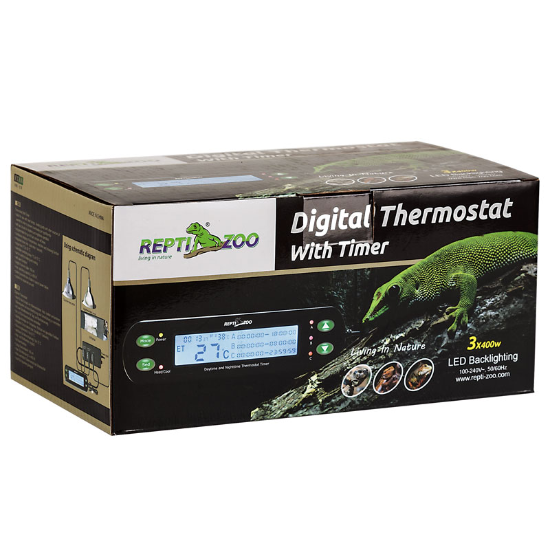 Терморегулятор предназначен для поддержания заданной температуры. Используется с любыми нагревательными приборами ТМ Repti-Zoo. Имеет два цикла включения и выключения дневных/ночных режимов, а также возможность программирования 8 циклов включения/выключения. Установка циклов с помощью секундного таймера. Отображение текущего времени, заданных циклов, температуры и влажности выводится на ЖК-дисплей. Контроль измерения температуры в пределах от 0 до 50 град.С, изменение текущей температуры на 1-15 град.С. Прост в установке.