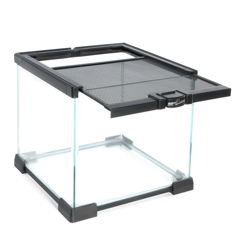 Мини-террариумы из силикатного стекла подходят для содержания насекомых, членистоногих, амфибий и молодняка рептилий. Верхняя металлическая сетка с механическим замком используется в качестве дверцы. С помощью направляющих в верхней и нижней части несколько мини-террариумов можно поставить один на другой.