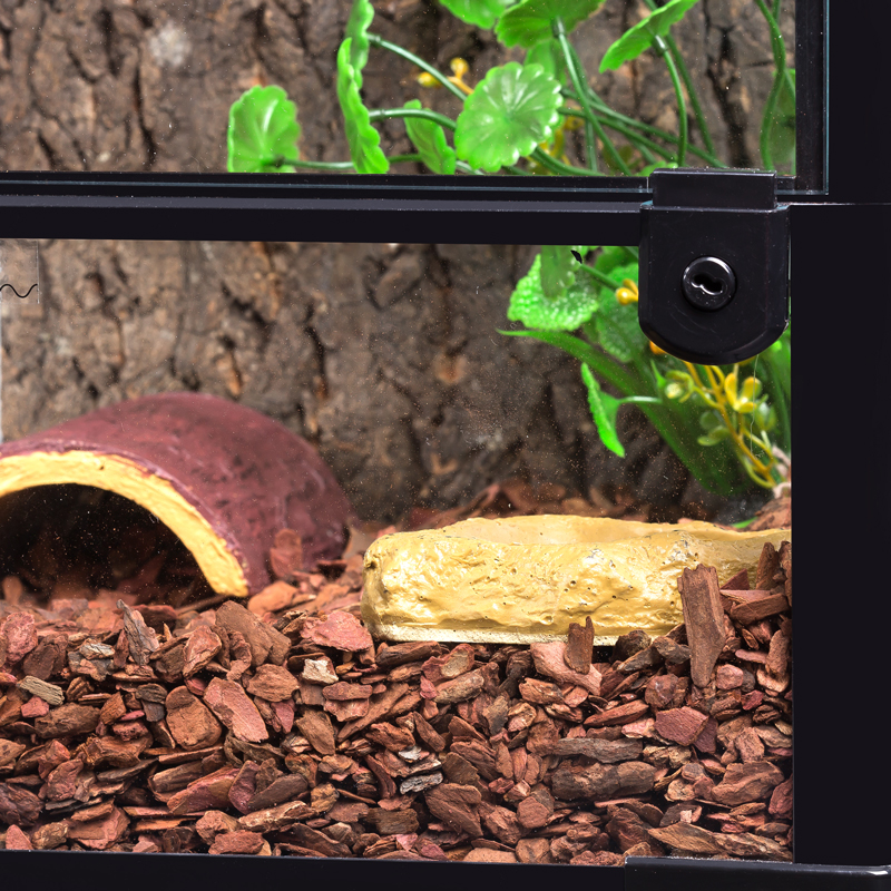 Террариумы из силикатного стекла с одной распашной дверцей подходят для всех видов рептилий и амфибий. Могут быть использованы для некоторых видов черепах. Крышка и боковая вентиляция из металлической сетки, в боковой стенке регулируемое технологическое отверстие для подключения оборудования. Герметичный акваподдон. Сборные модели террариумов удобно хранить и транспортировать. Широкая линейка типоразмеров.