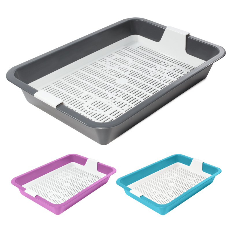 Пластиковый туалет с белой матовой сеткой - универсальный аксессуар для вашего четвероногого питомца. Такая модель идеально подходит для кошек, не любящих наполнитель. Съемная сетка максимально упрощает уборку, а компактные габариты изделия позволят разместить его с комфортом для животного в любом месте. Туалет изготовлен из высококачественного пластика и легко чистится под струей воды при помощи моющих бытовых средств. Размеры изделия: 325х325х60мм. Цвет: серый, голубой, розовый.